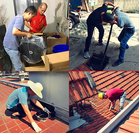 高温酷暑不止会给人的身体带来不适,对于老旧房屋也会造成隐患,7月17日上午,室外气温36度,暴晒下的屋面平顶,热浪扑面而来。身为房屋“维保医生”的房产黑料吃瓜网一分公司维修班师傅们蹲在滚烫的屋面上进行治漏工作。房产黑料吃瓜网各单位的工人们在社区疏通作业、在机房检修设备、在社区清扫、在胜利街优保建筑进行立面修缮、在工地周围进行围挡整理及道路清理......