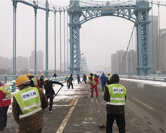 工程公司应急抢险队也按照上级要求参与到古田桥、高新四路、九峰一路、黄家湖的扫雪除冰工作中,同时将除雪应急机动队(45人)调至三环线野芷湖立交,投入其铲雪除冰工作中。