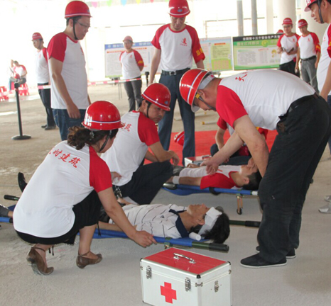 此次实战演练模拟了施工现场触电事故及脚手架垮塌的突发事件,旨在进一步完善建筑企业应急救援预案,不断提高施工现场事故应急处置能力,增强从业人员现场救援水平。天时公司救援人员在总指挥徐汉新的带领下紧张有序地开展了断电、抢救、上报事故等应急救援程序。整场实战演练持续了近30分钟。