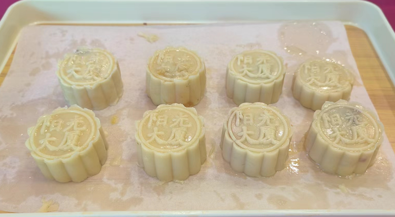 活动当天,阳光大厦园区内五星红旗迎风飘扬、花团锦簇,在浓厚的节日氛围下,物业工作人员邀请园区企业员工一起DIY手工月饼。大家一边和面团、包馅料,一边话着中秋故事,现场一片欢声笑语。不多久,一枚枚带有“阳光大厦”印花的月饼成型,传达着对客户的美好祝福和真挚情谊。