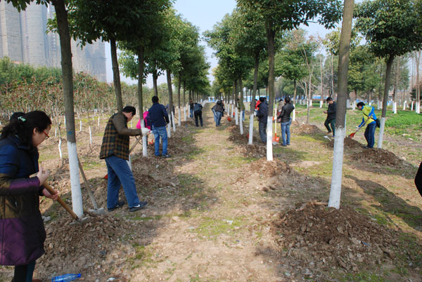 参加活动的职工人人充满热情,配合默契,有的松土、有的锄草、有的清除周边的杂草和石子,劲往一处使、汗往一处流,充分发扬了团结互助、乐于奉献的精神。经过大家两个多小时的挥汗奋战,整片树林一扫冬日颓废,焕发勃勃生机。