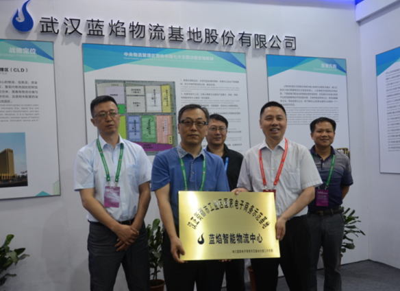5月18日,在第九届中国中部投资贸易博览会暨首届中国(武汉)国际电子商务展上,?口区区长景新华现场授予武汉蓝焰电商城(蓝焰智能物流中心) “国家电子商务示范基地”的称号。武汉蓝焰物流公司董事长袁云飞、常务副总经理田勇参加了授牌仪式。