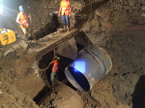地铁三号线双墩站位于建设大道北侧即铁道部大桥工程局桥梁科学研究院门前,此次迁改拟拆除原D1220管道45米,新装D1220*12管道72米。该工程位于建设大道和汉西路交汇处,由于地铁施工打围,由二环线往古田方向全部车流都要经过此次迁改管位,所以该工程主体施工均在夜间进行,施工难度大,交通疏导困难。