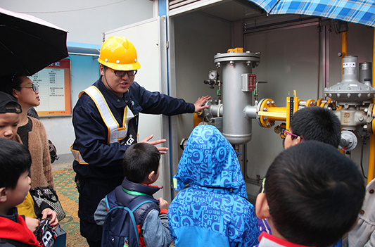 活动的最后一个环节是进社区巡线检查,此时外边下起了小雨,巡线员吴波冒雨为大家介绍巡线的必要性、如何发现漏气等然气相关知识。吴波问大家:“天然气本来是没有味道的,为什么我们闻到的天然气会有一股刺鼻的味道?”小记者们异口同声:“因为加了臭味,会让人对天然气泄漏更警觉!” 小记者王天成的妈妈说:“这次活动,让大人小孩对天然气的了解更进一步,学习生活常识非常重要,会在关键时刻救命!”