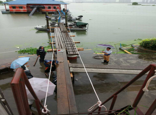 针对长江、汉江水位快速上升,各水厂及时调整取水设施运行状态:宗关、平湖门、白沙洲、堤角水厂及时调整江边取水船锚链;琴断口、国棉水厂及时移船接管,确保取水运行安全。