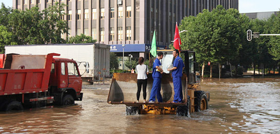 7日,暴雨后的武汉初晴,但藏龙岛居民仍被水围困。在了解到王女士的用气难题后,天然气公司组织表具维修人员前往藏龙岛。由于汤逊湖上通往藏龙岛的桥被淹,该公司调集救生衣、救生圈和皮划艇,准备涉水过桥。因没有牵引,担心皮划艇漂浮到湖中去,当天下午六点,天然气表具维修组长翟达决定和其他10位维修员一起淌水过桥。维修员穿上救生衣沿着桥身,一脚一步向前进,淌过及腰的深水过桥。