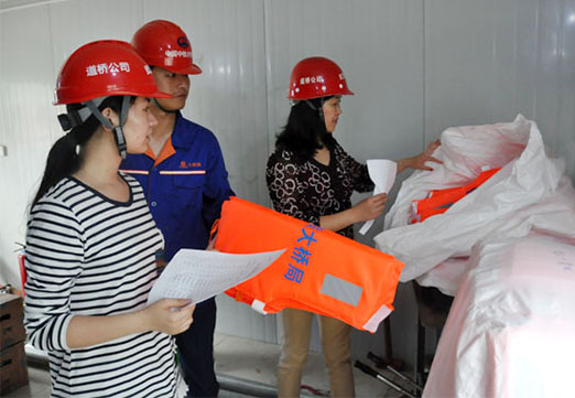 7月4日22:00,长江武汉水位突破警戒线,汛情紧急,杨泗港大桥两岸沉井开始停止作业,并抓紧撤离堤内施工设施、办公和生活物资,抢险分队和设备集结待命。7月5日上午,公司“防汛排渍物资巡查队”第一分队姜燕、王萍、彭念、张明珠等人,深入到杨泗港大桥汉阳侧防汛应急物资露天堆场和室内仓库,现场清点防汛物资储备情况,督促项目部足额落实防汛物资数量,确保防汛需要。