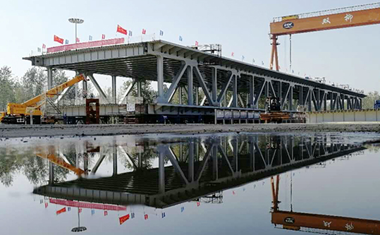 公司组织钢梁施工单位在厂区内进行预拼装,确保每节钢桁梁尺寸的精准到位。杨泗港大桥首轮5个节段钢桁梁预拼装成功是杨泗港大桥钢桁梁加工制造的重要节点,预示着钢桁梁加工制造进入全面铺开的总攻阶段。