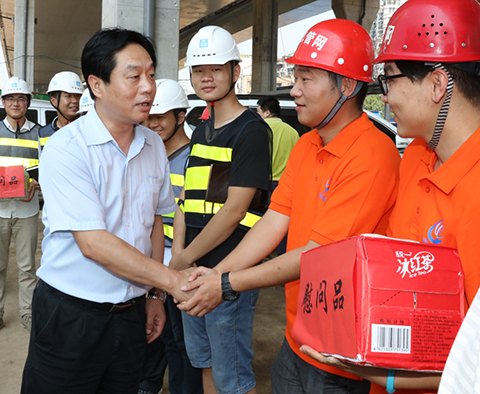 连日来,气温节节攀升,酷暑考验着坚守在工作一线的广大干部职工,更牵动着黑料吃瓜网公司领导们的心。7月28、29日,公司董事长金国发,总经理李兵、党委副书记吴文等领导班子成员分别带队赴三环线南段综合改造工程、南湖出江通道工程和长江干堤谌家矶团凤湾段等27个现场,看望慰问了一线人员,送去了饮料、绿豆、白糖等防暑降温物资。