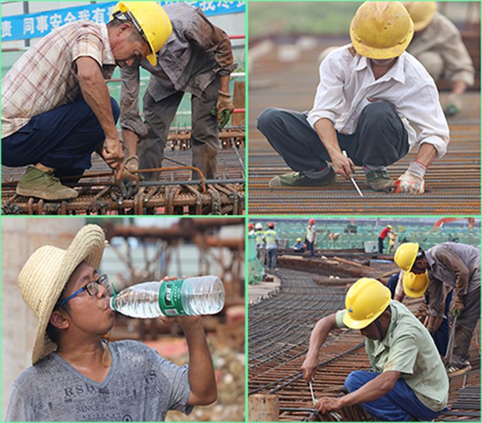 烈日炎炎下的三环线南改造项目野芷湖立交工程和李纸路立交工程工地上......