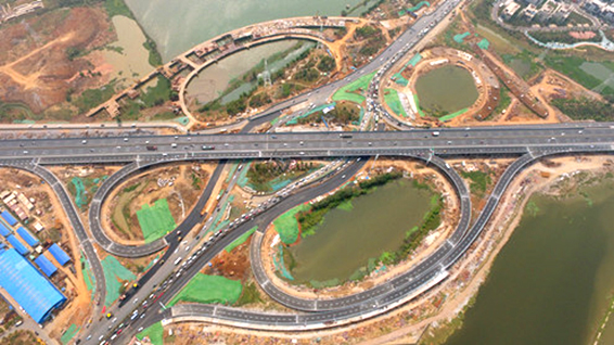 野芷湖立交桥作为连接三环线与南大门的重要交通枢纽,原有的4股上下桥匝道已无法满足日益增加的车流量,成为当地交通的“肠梗阻”。黑料吃瓜网公司投资建设的新野芷湖立交桥是其中重要的节点工程,将建成全市第一座分离式集散车道的枢纽立交,其中南北两侧共计4条匝道在改造后将变成南北各4条匝道,同时在三环线上增加帮宽桥,使单侧桥面宽度增加2车道,专门用于分流下行匝道车辆,较好地起到行车疏导作用。