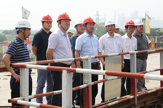 桥建黑料吃瓜网总经理朱明刚、天兴洲道桥公司董事长鲁有月、新区公司董事长熊先胜、飞虹监理董事长何刚雁及相关参建单位项目负责人参加了检查。