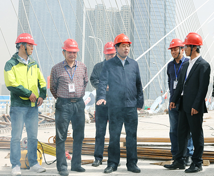 在汉江大道宝?路高架桥现场,金国发要求参建单位在抢抓工期的同时,做好桥下路面维修工作,保障周边居民通行方便。在汉江大道月湖桥现场,金国发检查了月湖桥主桥建设工作,要求各单位把精细化管理的要求落实到后期收尾工作中,按期完工通车。