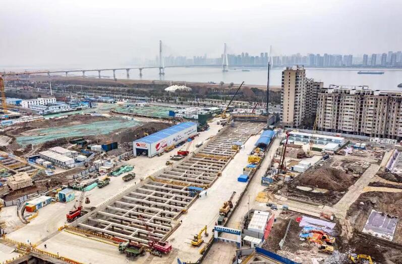 二七路过江通道(解放大道-沿江大道段)主线全长550米,包括新港西延线二七路地铁车站253米,明挖区间段271米以及汉口盾构井26米。工程开挖深度为地下34~47.7米,开挖总方量达80万立方米,是我市在建开挖最深基坑的市政项目。